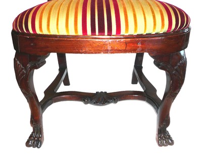 Description: Irish Carved Mahogany Side Chair, Circa 1800; labeled on bottom: _6609 Miller and Beatty Ltd/ House Furnishers/ Grafton Street Dublin.